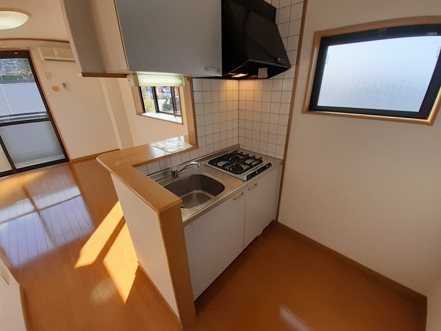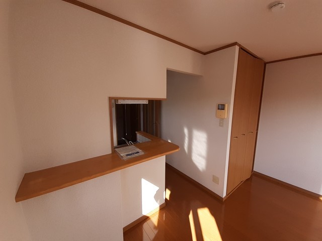 上階角部屋、独立洗面台・室内洗濯機置場。カウンターキッチン・モニターホンあります。