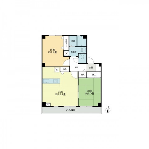 | 間取り内訳 | LDK13.4/和6/洋7.4 | 専有面積 | 60.53㎡ |
