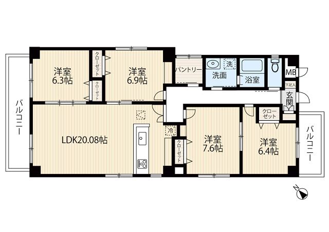 | 間取り内訳 | LDK20/洋7.6/洋6.9/洋6.4/洋6.3 | 専有面積 | 102.65㎡ |