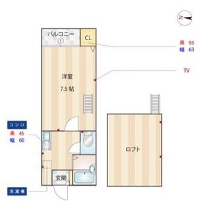 | 間取り内訳 | 洋7.5・K2 | 専有面積 | 18.15㎡ |