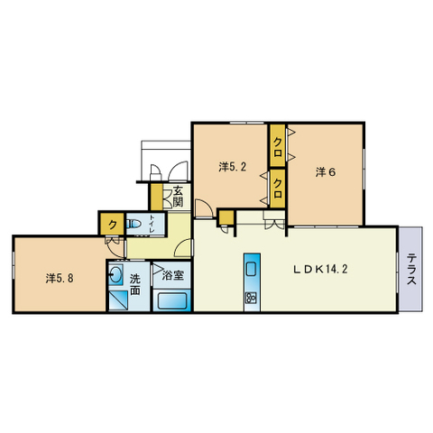 | 間取り内訳 | LDK14.2/洋6/洋5.8/洋5.2 | 専有面積 | 72.63㎡ |