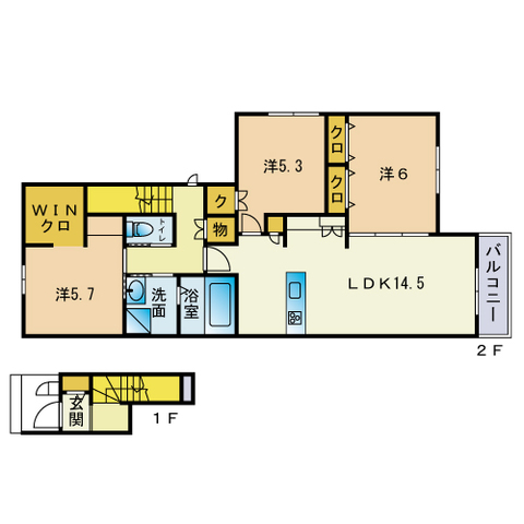 | 間取り内訳 | LDK14.5/洋6/洋5.7/洋5.3 | 専有面積 | 80.72㎡ |