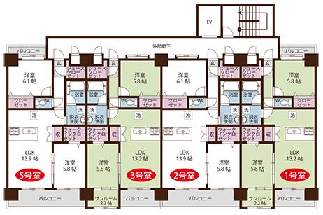 | 間取り内訳 | 専有面積 | 62.13㎡ | |