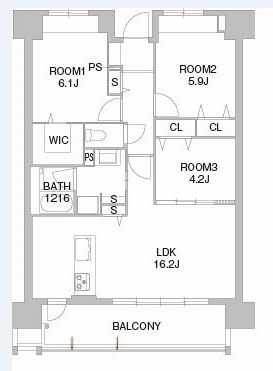 | 間取り内訳 | LDK16.2/洋6.1/洋5.9/洋4.2 | 専有面積 | 71.85㎡ |