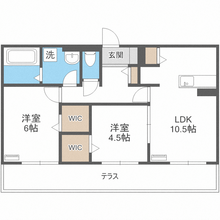 | 間取り内訳 | LDK10.5/洋6/洋4.5 | 専有面積 | 55.03㎡ |