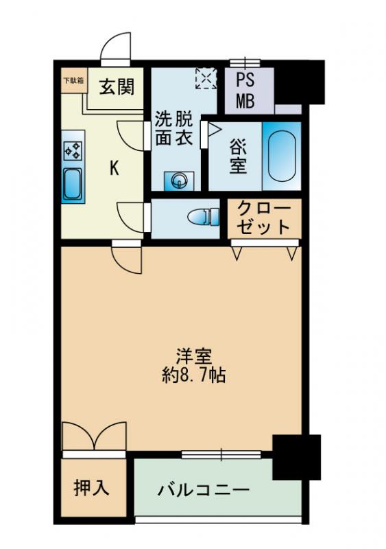 | 間取り内訳 | 洋8.7 | 専有面積 | 27.72㎡ |