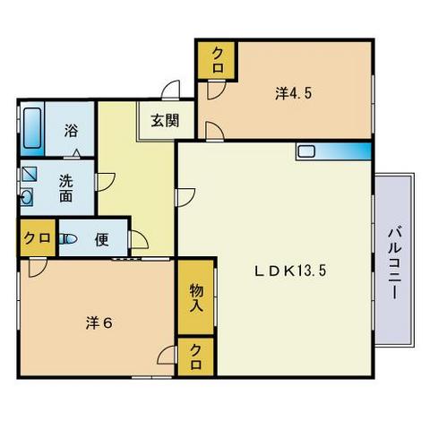 | 間取り内訳 | LDK13.5/洋6/洋4.5 | 専有面積 | 58.84㎡ |
