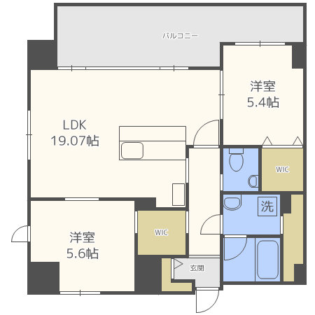 | 間取り内訳 | 洋5.6/5.4 LDK19 | 専有面積 | 61.00㎡ |
