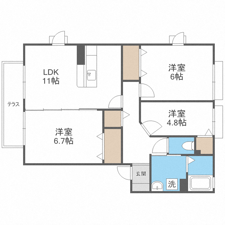 | 間取り内訳 | 洋4.8/洋6/洋6.7/LDK11 | 専有面積 | 66.50㎡ |