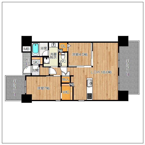 | 間取り内訳 | 洋 7・4.5 LDK 18.6 | 専有面積 | 64.90㎡ |