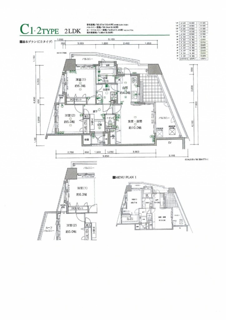 | 間取り内訳 | 洋6.3/洋5/LDK14/その他0.5 | 専有面積 | 60.87㎡ |