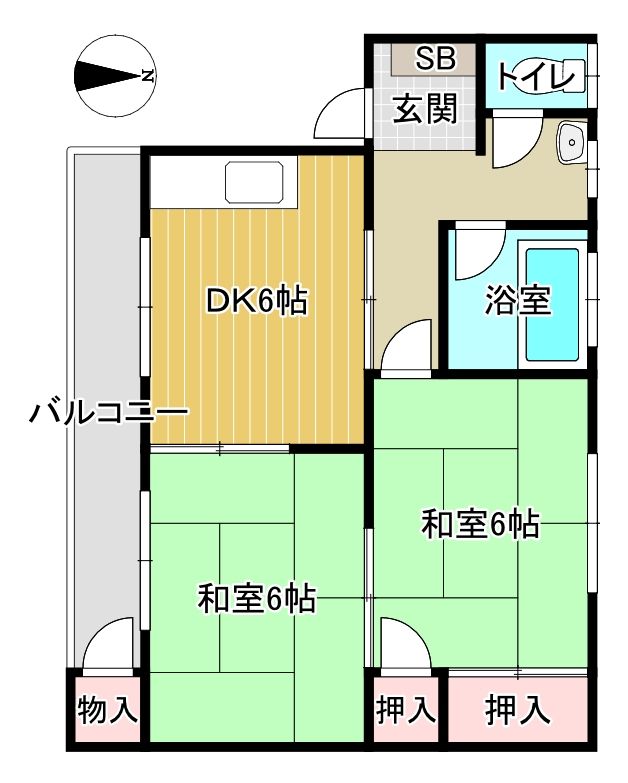 | 間取り内訳 | 和6/和6/DK6 | 専有面積 | 45.00㎡ |