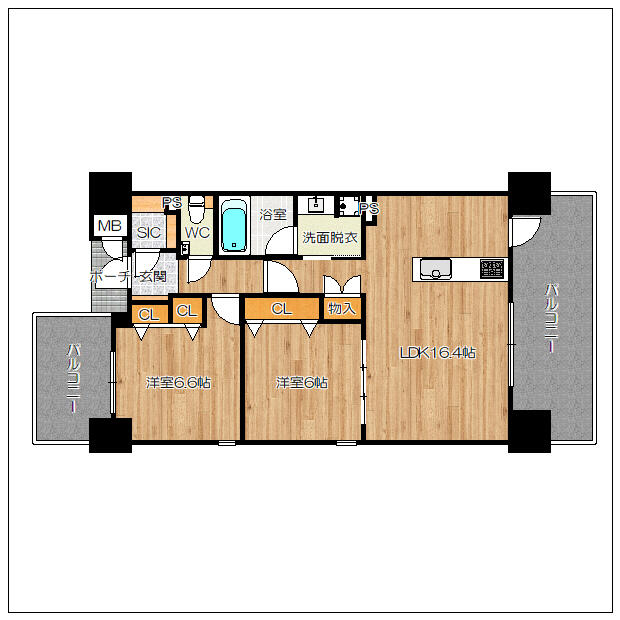 | 間取り内訳 | 洋 6.6・6 LDK 16.4 | 専有面積 | 64.36㎡ |