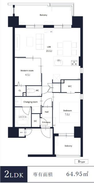 | 間取り内訳 | 洋 7・4.5 LDK 18.6 | 専有面積 | 64.90㎡ |
