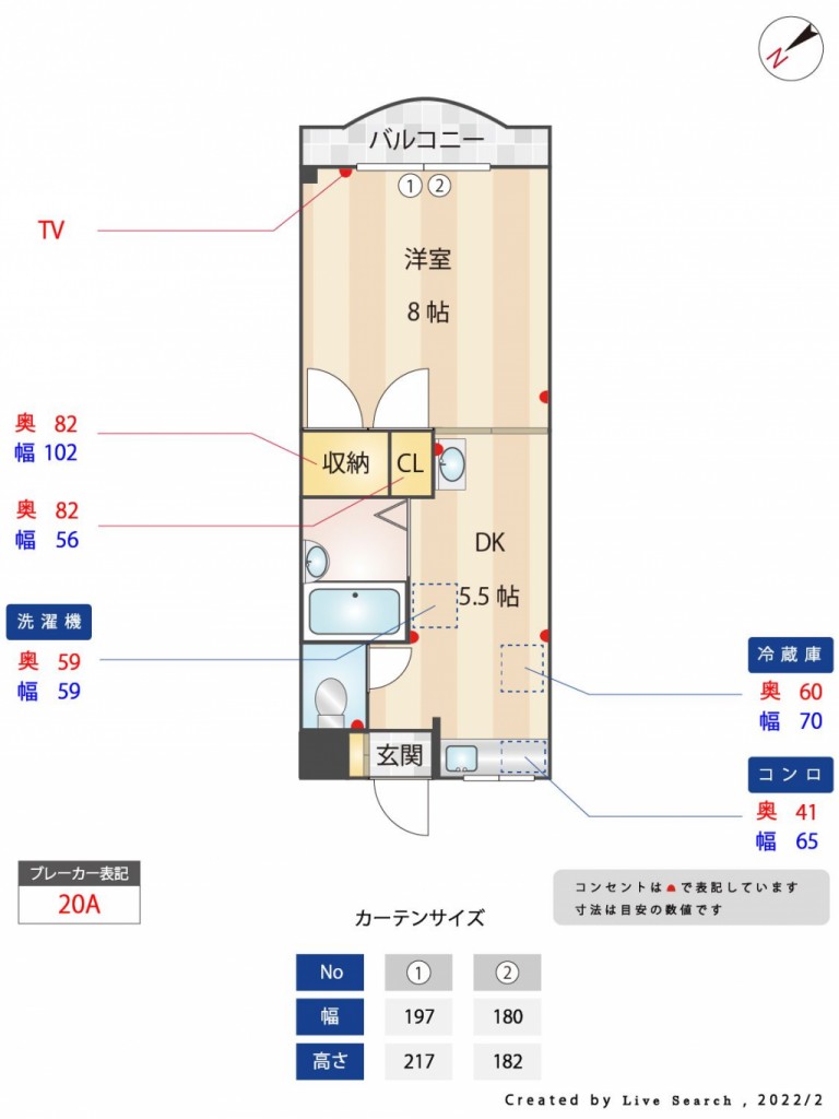 | 間取り内訳 | DK5.5/洋8 | 専有面積 | 29.73㎡ |