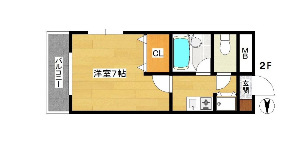 | 間取り内訳 | K/洋7 | 専有面積 | 21.00㎡ |