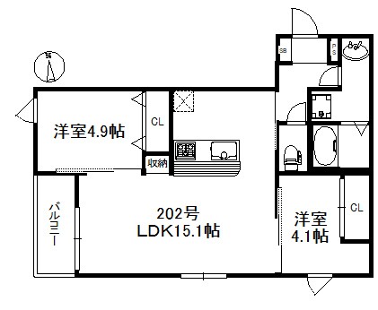 | 間取り内訳 | 洋4.9帖・洋4.1帖 | 専有面積 | 55.19㎡ |