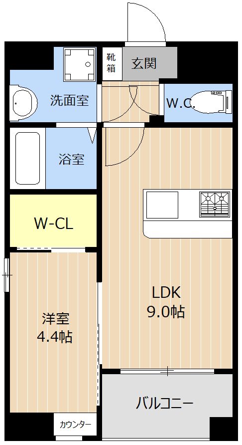 | 間取り内訳 | LDK9/洋4.4 | 専有面積 | 34.86㎡ |